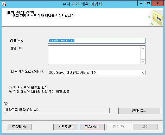 계획 속성> 이름을 입력합니다. 구별 가능하도록 적절히 입력하면 됩니다.