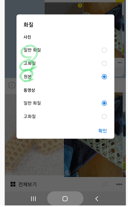 물론 원본, 고화질을 선택하면 사이즈가 커지겠지요.