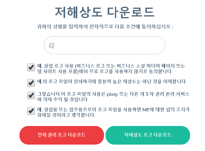 저해상도 다운로드를 선택하니 동의르 하라고 하네요. 이름 쓰고 동의 합니다.