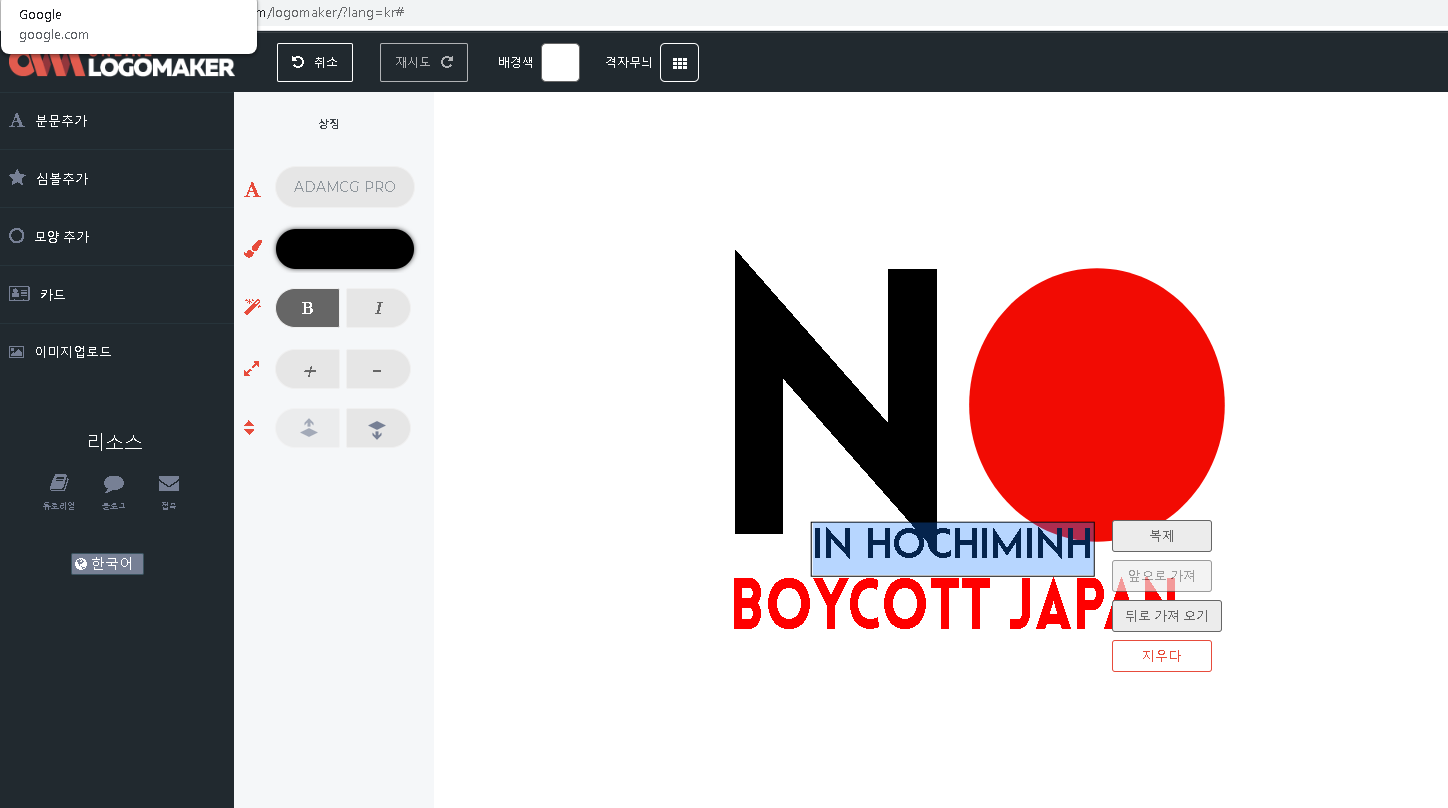 다시 YOUR LOGO TEXT 에 BOYCOTT JAPAN을 입력해 줍니다.