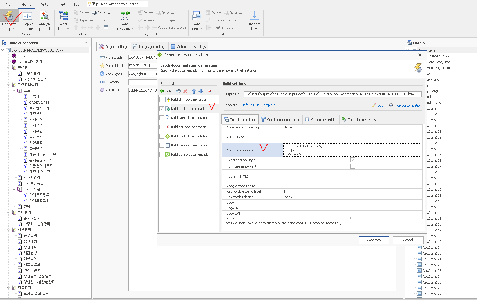 helpndoc 에서 하려한 것은 erp 프로그램의 도움말인데,