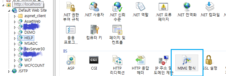 iis default web site 에서 도움말을 선택하면 오른쪽에 mime형식이 있습니다. 클릭하면 리스트가 뜨는데 추가를 누르고
