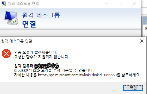 CredSSP 암호화 오라클 수정 때문일 수 있습니다.