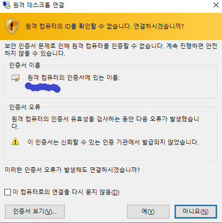 6. 원격데스크톱 연결 실행해보면 잘 연결이 됩니다.