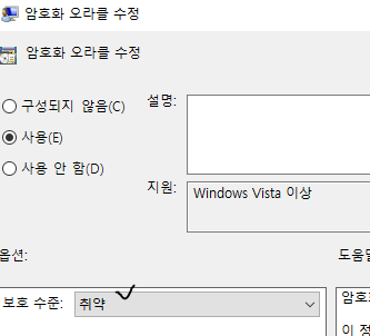 그 아래 보호 수준 : 완화됨에서 취약으로 변경해 줍니다.