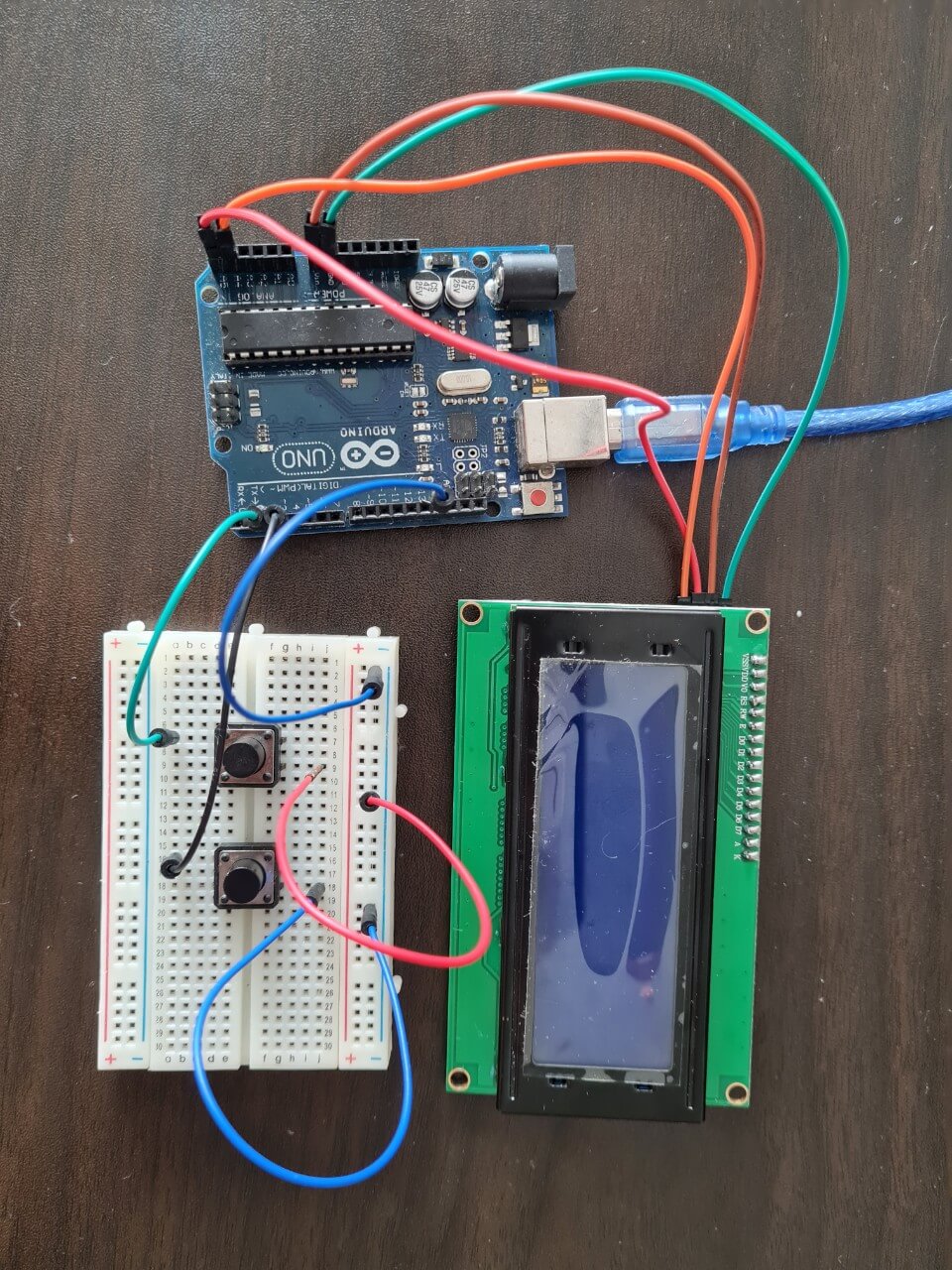Arduino UNO + LCD + Push buttons