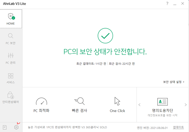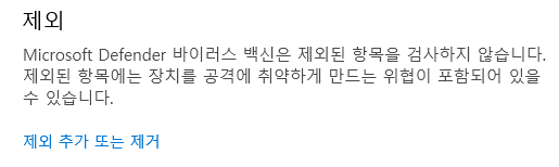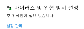 6. 바이러스 위헙 방지 설정에서 설정관리를 선택합니다.