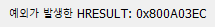 계속해서 HRESULT: 0x800A03EC 오류가 발생한다.