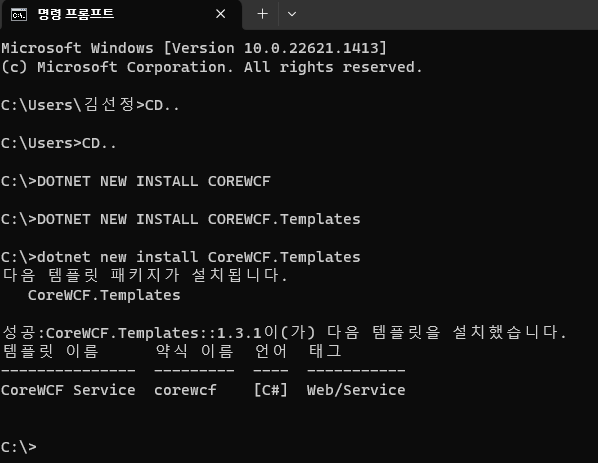 C:\>dotnet new install CoreWCF.Templates