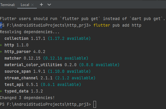 PS F:\AndroidStudioProjects\weather_app> flutter pub add intl